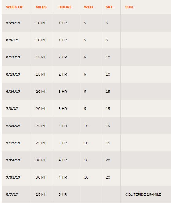 Training for this particular route doesn’t need to be overly intensive, and even a few hours a week in the saddle will have you plenty ready to ride. Check out more about the route at the Obliteride website, and here is their proposed training plan: